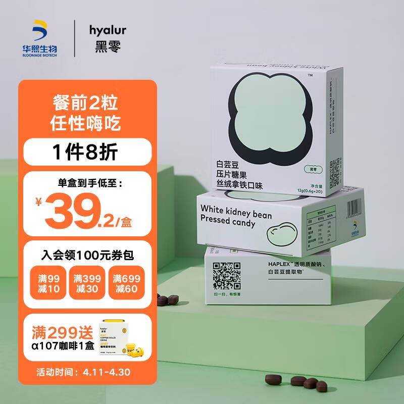 华熙生物黑零 白芸豆益生菌压片咀嚼糖口服玻尿酸咖啡粉 0.6g*20粒京东
